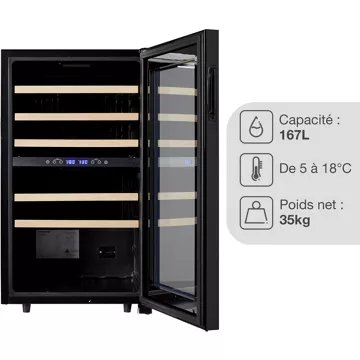 - Type d'appareil : cave de service, elle permet de servir le vin à une température idéale. Parfaite pour les dégustateurs fins et réguliers. Elle peut également compléter une cave traditionnelle enterrée.
