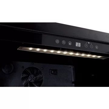 La cave à vin LE CHAI PRO360M se règle à l'aide d'un panneau de contrôle sensitif avec un affichage LED numérique. La température peut être réglée entre 5 degrés et 20 degrés. L'intérieur comprend un éclairage LED blanc sur les côtés pour vous offrir plus de visibilité.