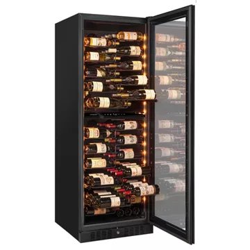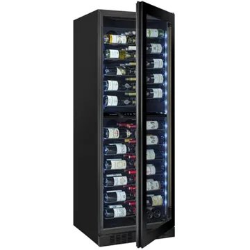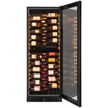 - Type de porte : vitrée, permet de visualiser facilement les bouteilles sans avoir à ouvrir la porte, ce qui réduit la circulation de l'air dans la cave et donc la variation de la température. Le traitement anti-uv protège le contenu.