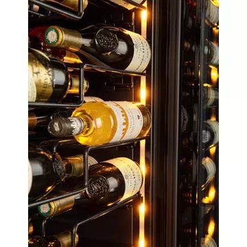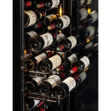 Outre ses performances techniques, la cave à vin AVINTAGE GALLERY brille par son design élégant et son éclairage LED blanc, ajustable en intensité et en couleur, qui met en valeur chaque bouteille comme dans une galerie d'art. Les 13 clayettes coulissantes, conçues pour accueillir des bouteilles de différents formats, permettent une présentation horizontale 'label view' qui sublime les étiquettes. Compatible avec l'application Vinotag®, cette cave offre également une gestion numérique de votre collection. Enfin, son installation flexible, en pose libre ou encastrable, et son filtre à charbons actifs, garantissent une intégration harmonieuse dans tout intérieur tout en préservant la qualité de vos vins.