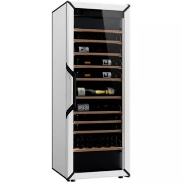 - Type de porte : vitrée, permet de visualiser facilement les bouteilles sans avoir à ouvrir la porte, ce qui réduit la circulation de l'air dans la cave et donc la variation de la température. Le traitement anti-uv protège le contenu.