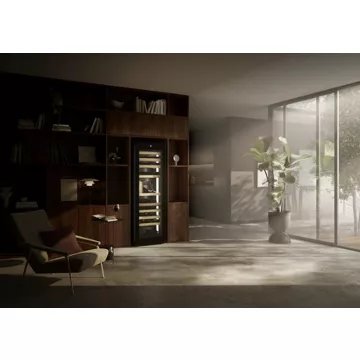 La cave à vin LIEBHERR WPgbi5283, issue de la gamme Vinidor Selection, est une armoire de mise en température des vins qui allie technologie de pointe et esthétique raffinée. Avec une capacité de 85 bouteilles de 0,75 l, un volume total de 357 l et une classe énergétique avantageuse, elle offre un espace de conservation idéal tout en maîtrisant la consommation électrique (126 kWh/an). Le niveau sonore extrêmement bas de 35 dB(A) garantit un environnement SuperSilent pour le repos de vos vins. La régulation électronique via un écran TFT couleur 2,4" en façade, l'affichage digital de la température pour les trois zones de température réglables de +5 °C à +20 °C et les alarmes visuelles et sonores pour la température et la porte, assurent une maîtrise parfaite des conditions de stockage. La sécurité enfants, la porte réversible et la serrure électronique complètent les fonctionnalités de cette cave à vin haut de gamme.