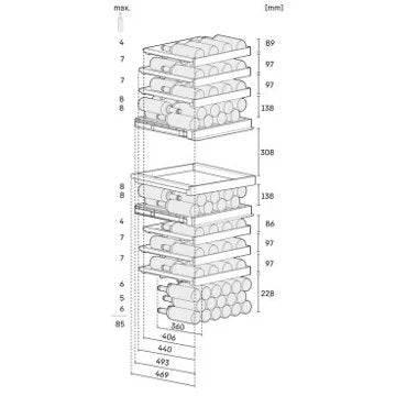 - Type de clayettes : clayette de présentation, permet de placer x bouteilles en position inclinée/horizontale pour une présentation élégante de votre collection.