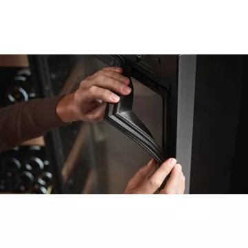 Conditions optimales- Type de porte : vitrée, permet de visualiser facilement les bouteilles sans avoir à ouvrir la porte, ce qui réduit la circulation de l'air dans la cave et donc la variation de la température. Le traitement anti-uv protège le contenu.