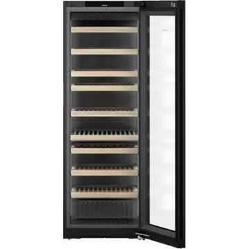 L'esthétique de la LIEBHERR WPgbi 7472 ne laisse pas indifférent avec sa porte en verre isolant et ses côtés noirs élégants. L'éclairage intérieur LED avec variateur et les clayettes en bois montées sur rails télescopiques allient praticité et mise en valeur de vos vins. La technologie PowerCooling assure une température homogène grâce à un air brassé filtré par le système FreshAir à charbon actif, qui élimine les odeurs pour préserver le bouquet des vins. La connectivité Smart Home via la SmartDeviceBox incluse et la serrure électronique renforcent l'aspect moderne et sécurisé de l'appareil. Enfin, la porte réversible et la poignée barre intégrée verticale soulignent la flexibilité et l'adaptabilité de cette cave à vin, conçue pour s'intégrer parfaitement dans tout intérieur raffiné.