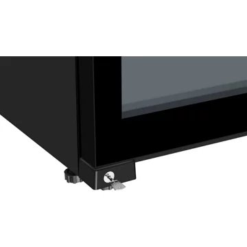 - Type de porte : vitrée, permet de visualiser facilement les bouteilles sans avoir à ouvrir la porte, ce qui réduit la circulation de l'air dans la cave et donc la variation de la température. Le traitement anti-uv protège le contenu.