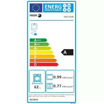 - Valeurs du label énergie : Label énergie A, Consommation en convection naturelle 0,99 kW, Consommation en chaleur tournante 0,77 kW