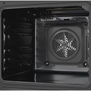- Mode de cuisson : chaleur tournante brassée, le four est équipé de 2 résistances, une en bas (sole), une en haut (voûte) et d'une hélice placée au fond de la cavité qui permet de brasser l'air, pour une cuisson rapide et une repartition homogène de la chaleur.