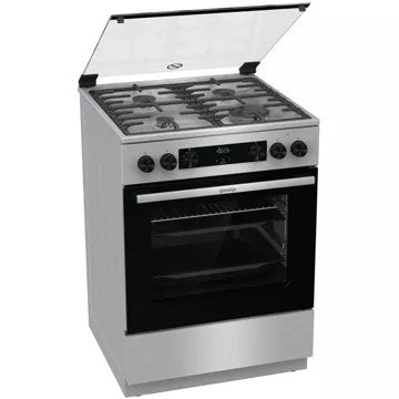 La cuisinière mixte Gorenje GK6C62XA combine un design intemporel avec les toutes dernières technologies. Dotée d'une table de cuisson gaz avec des grilles en fonte, ainsi que d'un four à chaleur tournante pulsée et d'un tiroir de rangement pratique, la Cuisinière mixte Gorenje GK6C62XA vous facilite le quotidien tout en optimisant l'espace.
