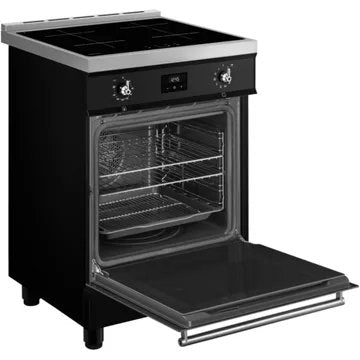La cuisinière induction SMEG C6IPBLT2 est bien adaptée pour les petits appartements. Elle ne nécessite aucune installation particulière, se pose librement et correspond à tous les styles de cuisine, grâce à une allure élégante et minimaliste. Son aspect épuré met en avant des matériaux qui donnent confiance, comme de l'inox pour le châssis et la poignée et du verre pour la surface de cuisson et la porte.