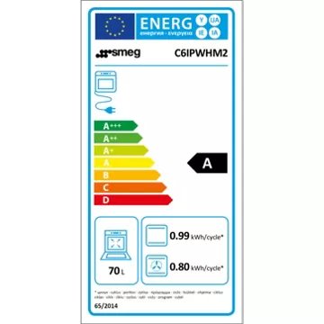 - Valeurs du label énergie : Label énergie A, Consommation en convection naturelle 0,99 kW, Consommation en chaleur tournante 0,8 kW