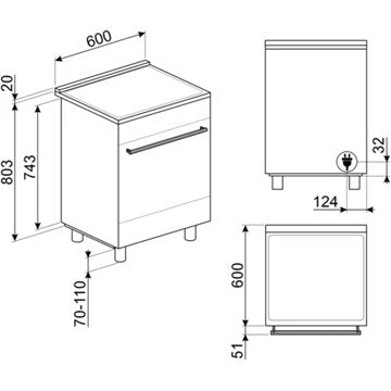 - Ampérage requis : Le circuit d'alimentation d'une cuisinière comporte une proctection différentielle 30 mA de type A avec un disjoncteur dédié de calibre 32 A et un câblage monophasé en section 6 mm².