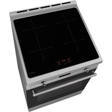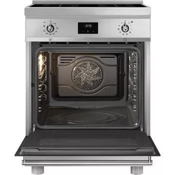 La Cuisinière induction SMEG C6IPXT2, issue de la série Concerto, se distingue par son esthétique Classica et sa finition inox brillant. Avec ses dimensions standard de 60x60 cm, elle s'intègre parfaitement dans toute cuisine moderne. Le plan de cuisson induction est équipé de quatre foyers à booster automatique, offrant une puissance allant jusqu'à 7200 W pour une cuisson rapide et précise. La fonction Bridge, permettant de combiner deux zones de cuisson, et l'affichage tactile des commandes sensitives renforcent l'aspect pratique et contemporain de cet appareil. La porte plein verre avec poignée Smeg Classica en inox brossé et les LED rouges ajoutent une touche de sophistication, tandis que le logo sérigraphié positionné sur le bandeau sous le four souligne l'attention portée aux détails par SMEG.