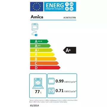- Valeurs du label énergie : Label énergie A+, Consommation en convection naturelle 0,99 kW, Consommation en chaleur tournante 0,71 kW