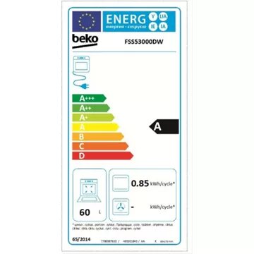 - Valeurs du label énergie : Label énergie A, Consommation en convection naturelle 0,85 kW