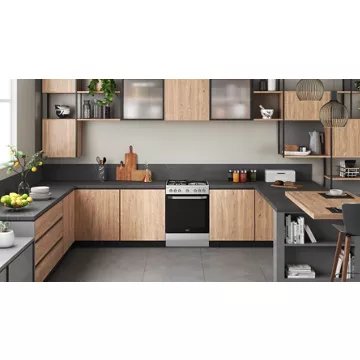 La cuisinière mixte HOTPOINT HS68M8PCX/FR possède une table de cuisson avec 4 foyers mixtes gaz électriques : 3 feux au gaz pour la préparation de plat avec une cuisson au plus juste et un foyer électrique pour booster les casseroles d'eau à bouillir ou réchauffer vos soupes plus rapidement.
