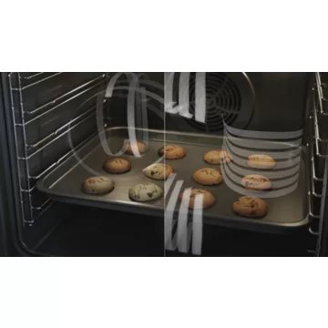 - Mode de cuisson : chaleur tournante pulsée, le four est équipé d'une hélice et d'une résistance circulaire situées sur la paroi arrière du four, pour une cuisson simultanée de différents plats sur plusieurs niveaux.