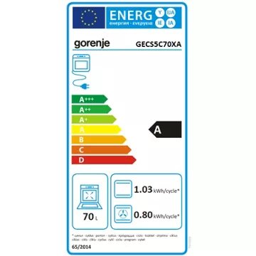 - Valeurs du label énergie : Label énergie A, Consommation en convection naturelle 1,03 kW, Consommation en chaleur tournante 0,8 kW