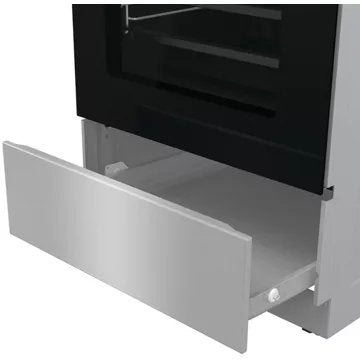 Dotée d'une table de cuisson vitrocéramique, ainsi que d'un four à chaleur tournante pulsée et d'un pratique tiroir de rangement, la Cuisinière vitrocéramique Gorenje GECS5C70XA vous facilite le quotidien tout en optimisant l'espace.