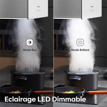 - Arrêt temporisé : oui, permet de programmer une durée de fonctionnement après la cuisson. Une fois cette durée écoulée, la hotte s'éteint automatiquement, offrant ainsi un moyen pratique d'économiser de l'énergie et de prolonger la purification de l'air après la cuisson.