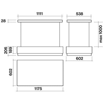 - Largeur : 117,5 cm, pour une zone de cuisson allant jusqu'à 117,5 cm de largueur.
