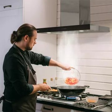 - Choisir la bonne puissance : dans une cuisine ouverte, où l'air circule dans le salon, optez toujours pour une hotte aspirante d'au moins 600 m³/h pour garantir une efficacité optimale. Pour une cuisine fermée, multipliez le volume (L x l x H) par 12 pour obtenir la capacité d'aspiration nécessaire.