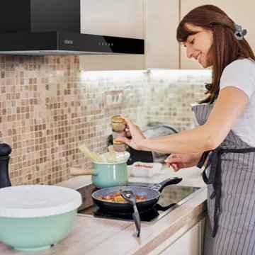 - Choisir la bonne puissance : dans une cuisine ouverte, où l'air circule dans le salon, optez toujours pour une hotte aspirante d'au moins 600 m³/h pour garantir une efficacité optimale. Pour une cuisine fermée, multipliez le volume (L x l x H) par 12 pour obtenir la capacité d'aspiration nécessaire.