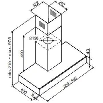 - Type de hotte : décorative murale, combine style et fonctionnalité. Elle ajoute une touche d'élégance à la cuisine tout en assurant une extraction puissante des fumées et odeurs.