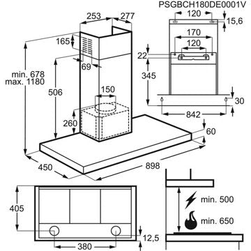 - Largeur : 90 cm, pour une zone de cuisson allant jusqu'à 90 cm de largueur.