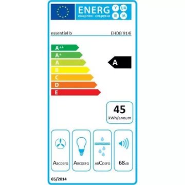 De classe énergétique A, la hotte aspirante Essentielb EHDB 914 ne consomme que 45kWh par an. De plus, elle est également peu bruyante durant son fonctionnement et ne dépasse pas 68 dB, vous évitant ainsi un bruit assourdissant qui peut vous gêner lorsque vous cuisinez.