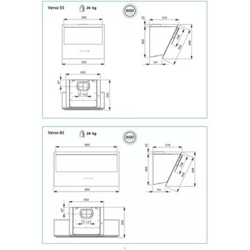 - Largeur : 85 cm, pour une zone de cuisson allant jusqu'à 90 cm de largueur.