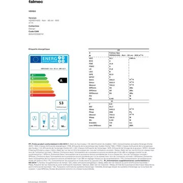 Hotte décorative murale FALMEC VERSO1420 Noire 85cm MURALE