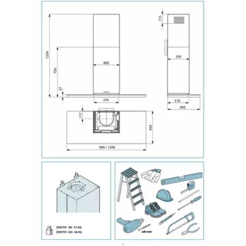 - Largeur : 90 cm, pour une zone de cuisson allant jusqu'à 90 cm de largueur.