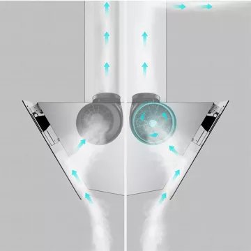 - Type de hotte : décorative murale inclinée, combine style et fonctionnalité. Sa conception permet de mieux gérer l'espace au-dessus de la zone de cuisson. Elle évite de devenir un obstacle dans l'espace de cuisson et n'obstrue pas la vue, rendant plus facile la préparation des plats.
