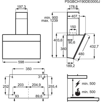 - Type de hotte : : décorative murale inclinée - évacuation et recyclage