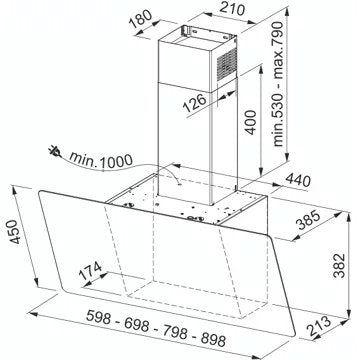- Débit d'air maxi : 470 - idéal pour une cuisine de 20m².