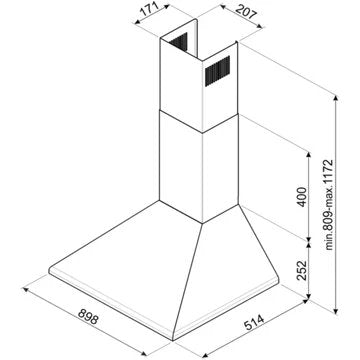 - Largeur : 90 cm, pour une zone de cuisson allant jusqu'à 90 cm de largueur.