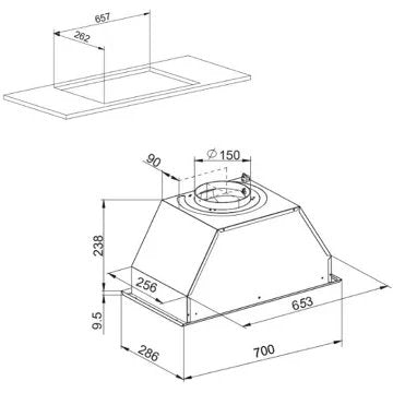 - Type de hotte : encastrable, s'intègre parfaitement dans les armoires, préservant l'esthétique de la cuisine. Elle offre une extraction efficace des fumées et odeurs tout en restant discrète. Son design discret et sa performance font d'elle un choix idéal pour les cuisines modernes soucieuses de leur apparence.