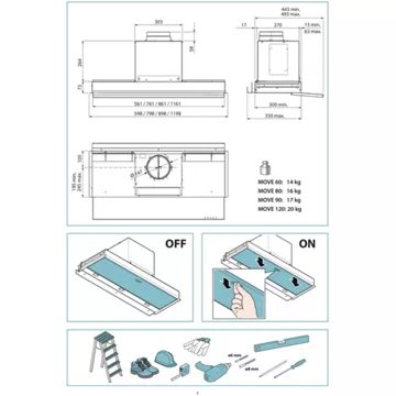 La Hotte FALMEC MOVE1410 dispose d'un débit d'air pour la surface de votre cuisine de 680 m3/h, pour une cuisine jusqu'à 25 m2. Ainsi, toute votre cuisine est aérée et vous évitez les odeurs et les fumées dans votre pièce, pour une pièce agréable et fonctionnelle chaque jour. Niveau sonore : 62.0. Le niveau sonore de la Hotte FALMEC MOVE1410 est de 62.0dB. Cela vous permet de profiter de votre cuisine et d'allumer votre hotte sans craindre un bruit trop important qui pourrait vous déranger lors de la préparation de vos plats, notamment si vous avez des invités ou que vous souhaitez regarder la télévision.