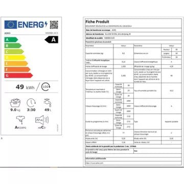 - Consommation d'électricité pour 100 cycles (programme éco) : 49,0 kW