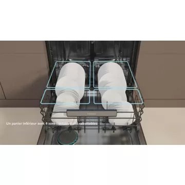 - Tiroir à couverts : Oui, il est placé dans la partie haute du lave-vaisselle et permet de bénéficier de 25% d'espace supplémentaire dans le panier inférieur