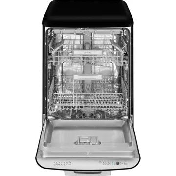 Ce qui nous attire en premier chez le lave-vaisselle LVFABBL3 60 cm, c'est son magnifique design rétro et son style emblématique de la marque d'électroménager haut de gamme SMEG. Son panneau de commande est invisible pour ne pas altérer son design très sobre.