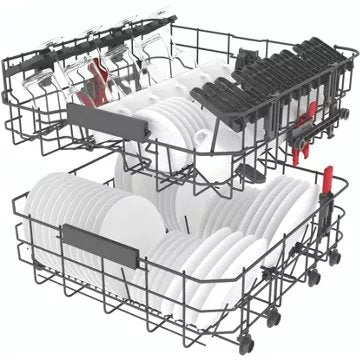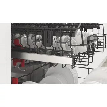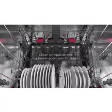 - Avantage du panier supérieur réglable en hauteur : Permet de laver des plats de grandes tailles ou de grands verres à pieds.