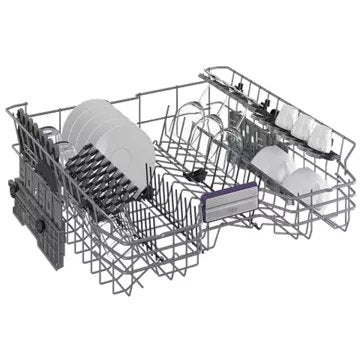- Avantage du panier supérieur réglable en hauteur : Permet de laver des plats de grandes tailles ou de grands verres à pieds.