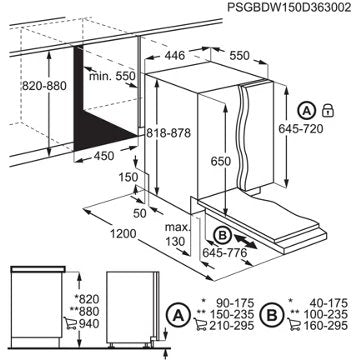 - Type d'ouverture de porte : si votre plinthe mesure 9 cm ou moins, seul un lave vaisselle porte à glissière compatible plinthes basses sera adapté à votre cuisine. Cependant, si votre plinthe mesure plus de 9 cm, tous les systèmes d'ouverture de porte seront compatibles avec votre cuisine.