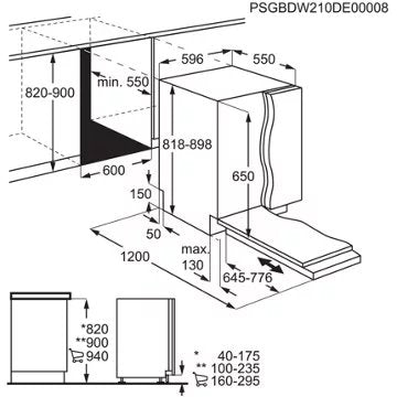 - Pour une niche de (l x h x p) : NC x 82 x 55 cm