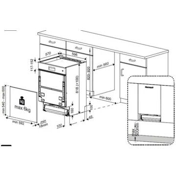 - Type d'ouverture de porte : si votre plinthe mesure 9 cm ou moins, seul un lave vaisselle porte à glissière compatible plinthes basses sera adapté à votre cuisine. Cependant, si votre plinthe mesure plus de 9 cm, tous les systèmes d'ouverture de porte seront compatibles avec votre cuisine.