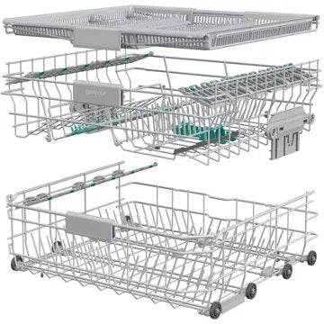 - Avantage du panier supérieur réglable en hauteur : Permet de laver des plats de grandes tailles ou de grands verres à pieds.