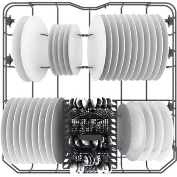 - Avantage du panier supérieur réglable en hauteur : Permet de laver des plats de grandes tailles ou de grands verres à pieds.