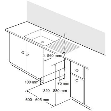 - Type d'ouverture de porte : si votre plinthe mesure 9 cm ou moins, seul un lave vaisselle porte à glissière compatible plinthes basses sera adapté à votre cuisine. Cependant, si votre plinthe mesure plus de 9 cm, tous les systèmes d'ouverture de porte seront compatibles avec votre cuisine.